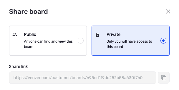 Copy the unique link of your board and send it directly to the vendor via email. This will allow the vendor to view your board and avoid miscommunication about your project.